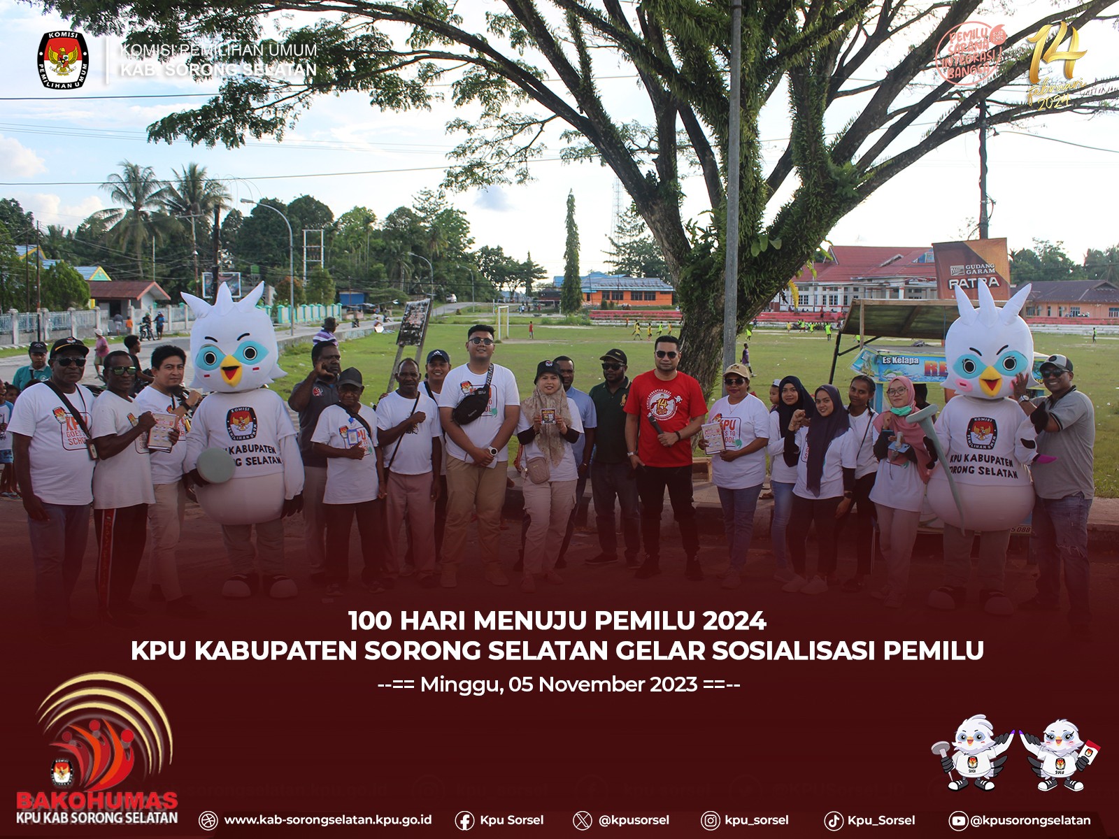 #temanpemilih, menjelang 100 hari menuju pemilu 2024, minggu (05/11/2023) KPU Kab. Sorong Selatan menggelar kegiatan sosialisasi pemilu di beberapa lokasi distrik teminabuan. Metode sosialisasi melalui penyebaran brosur terkait hari pemungutan suara, 5 jenis pemilihan dan surat suara, 18 partai politik serta situs cekdptonline. Selain itu, terdapat penempelan stiker ajakan ayo ke TPS, dibeberapa kendaraan yang melewati tempat sosialisai.