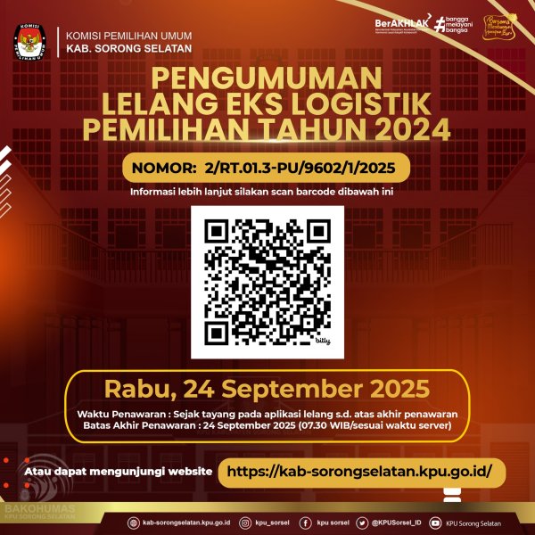 #Temanpemilih, KPU Kab. Sorong Selatan dengan perantara KPKNL Sorong akan melaksanakan lelang logistik pemilihan tahun 2024.