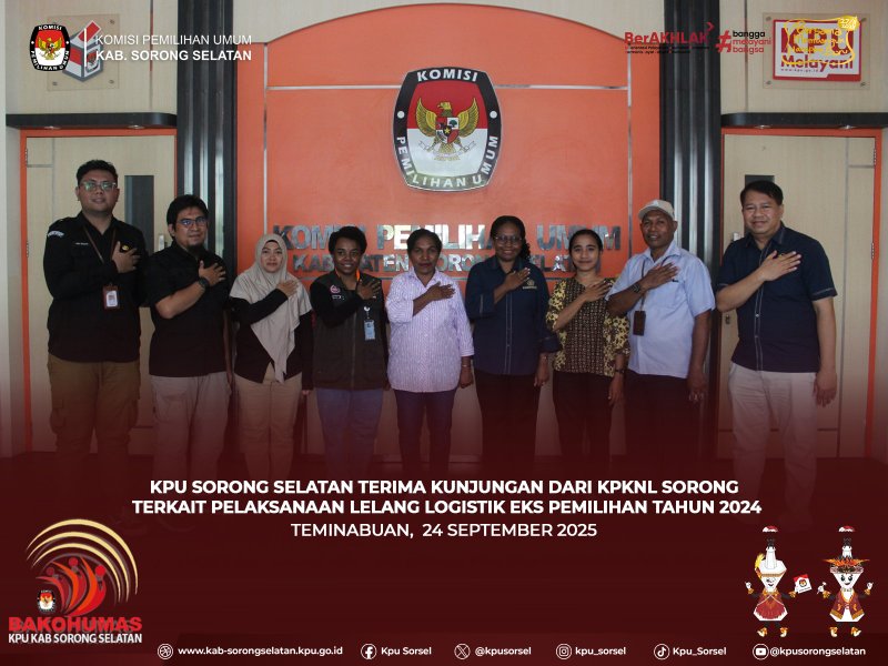 #Temanpemilih, Rabu(24/09/2025), KPU Kabupaten Sorong Selatan menerima kunjungan dari Kantor Pelayanan Kekayaan Negara dan Lelang (KPKNL) Sorong. Kunjungan ini dalam rangka melakukan koordinasi sekaligus pendampingan terkait pelaksanaan lelang logistik eks Pemilihan Tahun 2024.