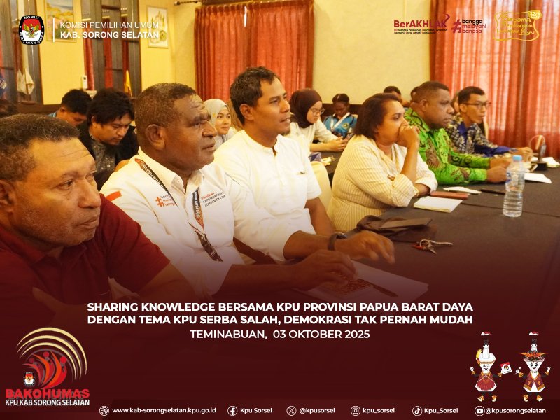 #Temanpemilih, Jumat (03/10/2025), KPU Kab Sorong Selatan melaksanakan kegiatan Sharing Knowledge bersama KPU Provinsi Papua Barat Daya secara daring.
