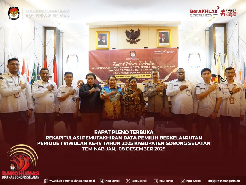 #Temanpemilih, KPU Kab. Sorong Selatan melaksanakan Rapat Pleno Pemutakhiran Data Pemilih Berkelanjutan (PDPB) Triwulan ke-4 Tahun 2025 di aula kantor KPU, pada tanggal 08/12/2025.