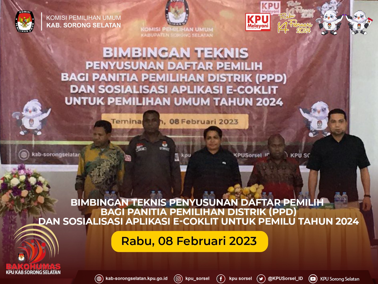 Bimbingan teknis penyusunan Daftar Pemilih Bagi Panitia Pemilihan Distrik (ppD) dan Sosialisasi Aplikasi E-Coklit untuk Pemilu tahun 2024