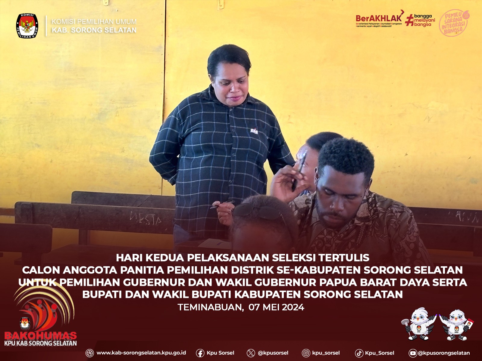 #Temanpemilih, selasa (07/05) KPU Kab. Sorong Selatan melaksanakan seleksi tertulis bagi peserta calon anggota PPD se-kabupaten Sorong selatan untuk pemilihan tahun 2024 di SD Negeri 14 Teminabuan.