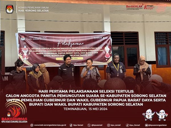 Pada hari pertama, pelaksanaan seleksi tertulis dilakukan di lima titik lokasi yaitu, SD Mubarok sodrofoyo. SD YPK Kampung Bariat, SD YPK Manggroholo, SMP N 1 Moswaren dan SD Negeri 14. Pesertanya adalah calon anggota PPS dari kampung salkma, fokour, sawiat, Konda, saifi, moswaren, kais darat dan teminabuan (humas kpu sorsel patma)