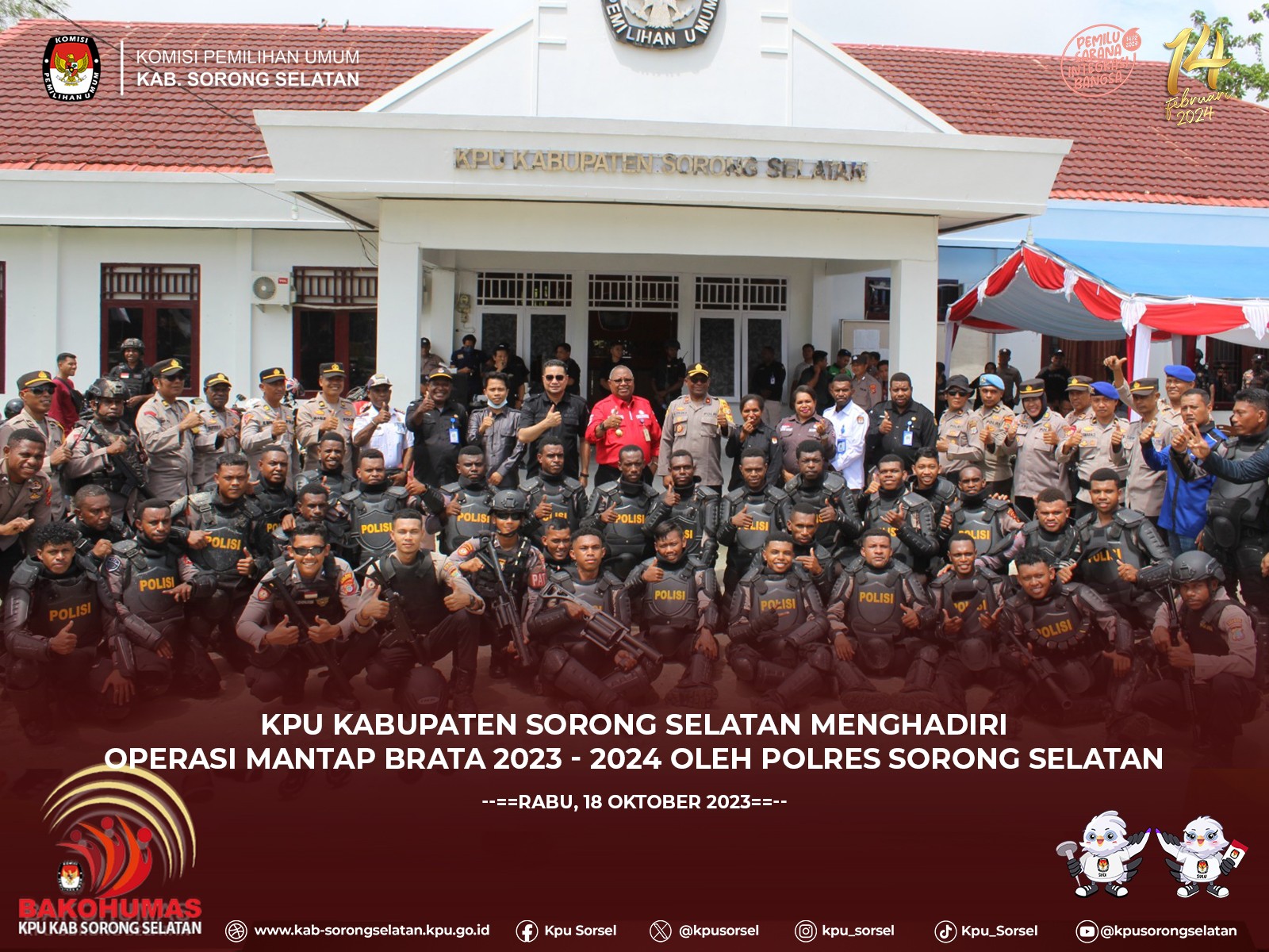 Operasi Mantap Brata 2023-2024 bekerja sama dengan KPU dan Bawaslu Kab. Sorong Selatan untuk memastikan kelancaran dan keamanan Pemilu dan Pilkada serentak 2024. Operasi ini digelar secara serentak mulai dari tingkat Polres hingga Mabes Polri.