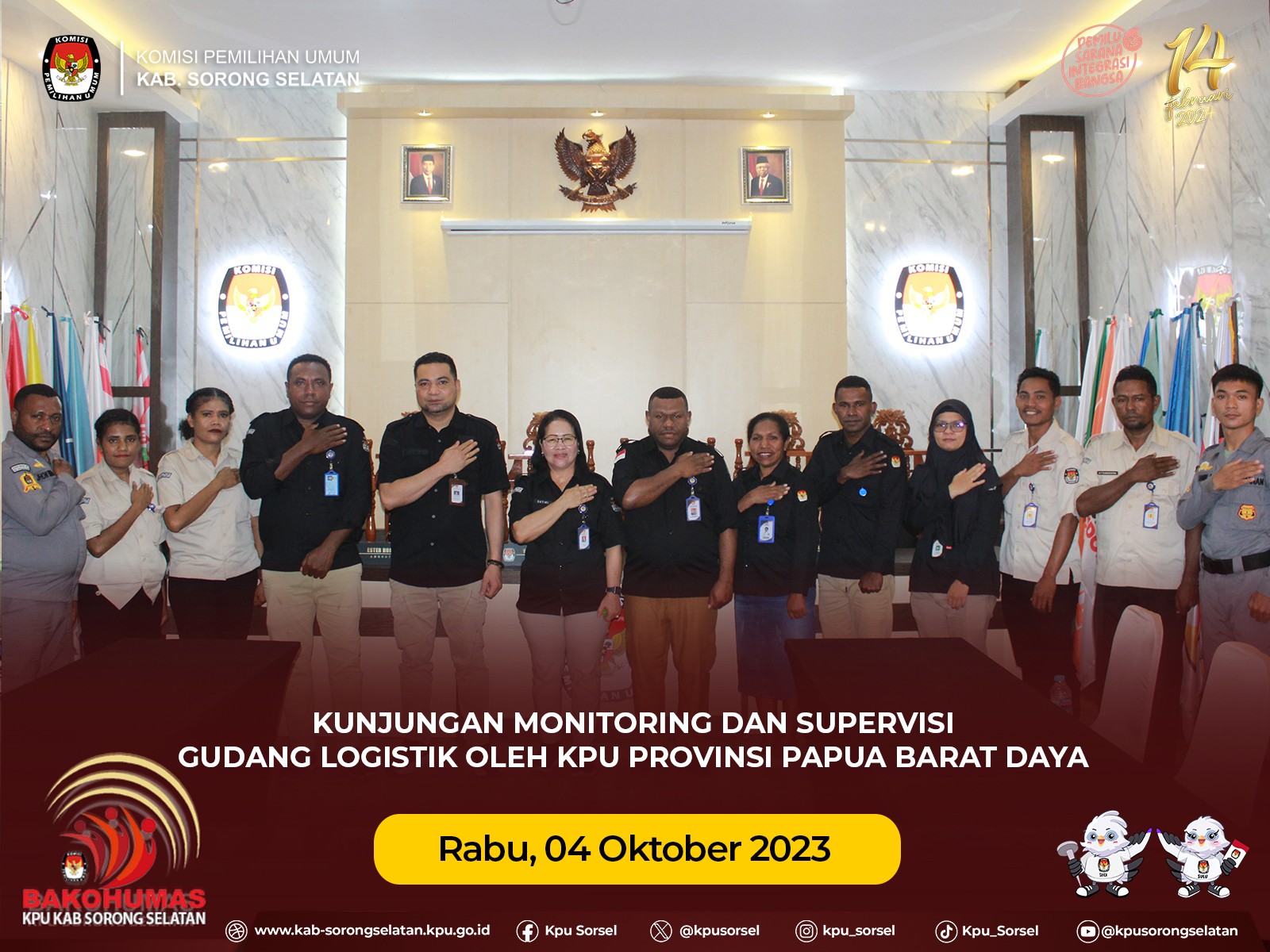 #Temanpemilih, Rabu (04/10/2023) KPU Kab. sorong selatan mendapat kunjungan dari KPU Provinsi Papua Barat Daya. Kunjungan tersebut dilakukan untuk monitoring serta supervisi kesiapan KPU Kab. Sorong Selatan dalam penyewaan Gudang Logistik Pemilu 2024. Mengingat saat ini KPU telah bersiap-siap dengan pengadaan logistik untuk tahap I.