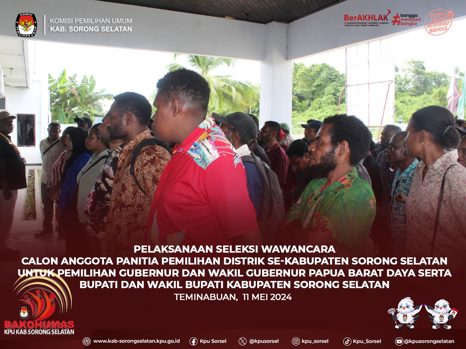 #Temanpemilih, sabtu (11/5) KPU kab. Sorong Selatan menggelar seleksi wawancara bagi peserta calon anggota PPD yang telah lulus dalam tahap seleksi tertulis. Seleksi wawancara tersebut dilaksanakan hingga minggu (12/5) bertempat dikantor KPU Kab. Sorong Selatan.