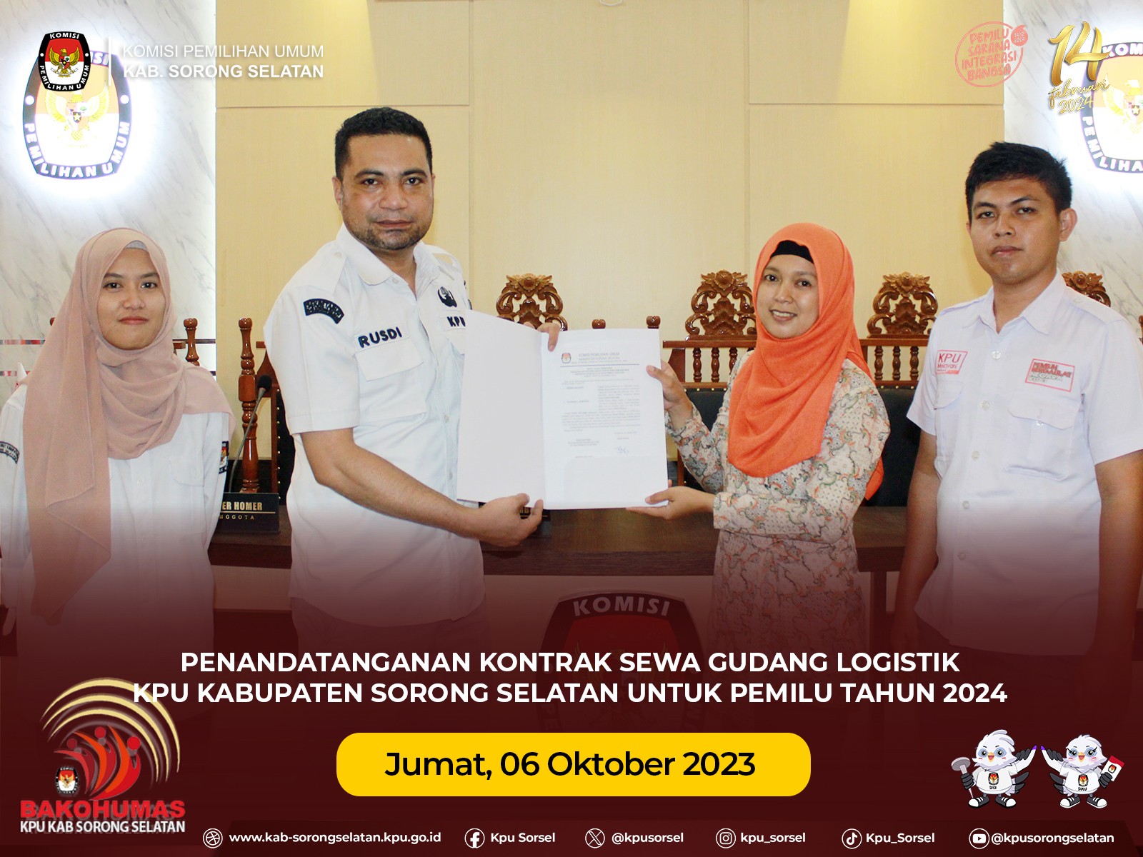 #Temanpemilih, Kamis(05/10/2023) KPU Kab. Sorong Selatan telah melakukan penandatanganan perjanjian kontrak sewa tanah dan bangunan untuk dijadikan Gudang tempat penyimpanan logistik pemilihan serentak tahun 2024.