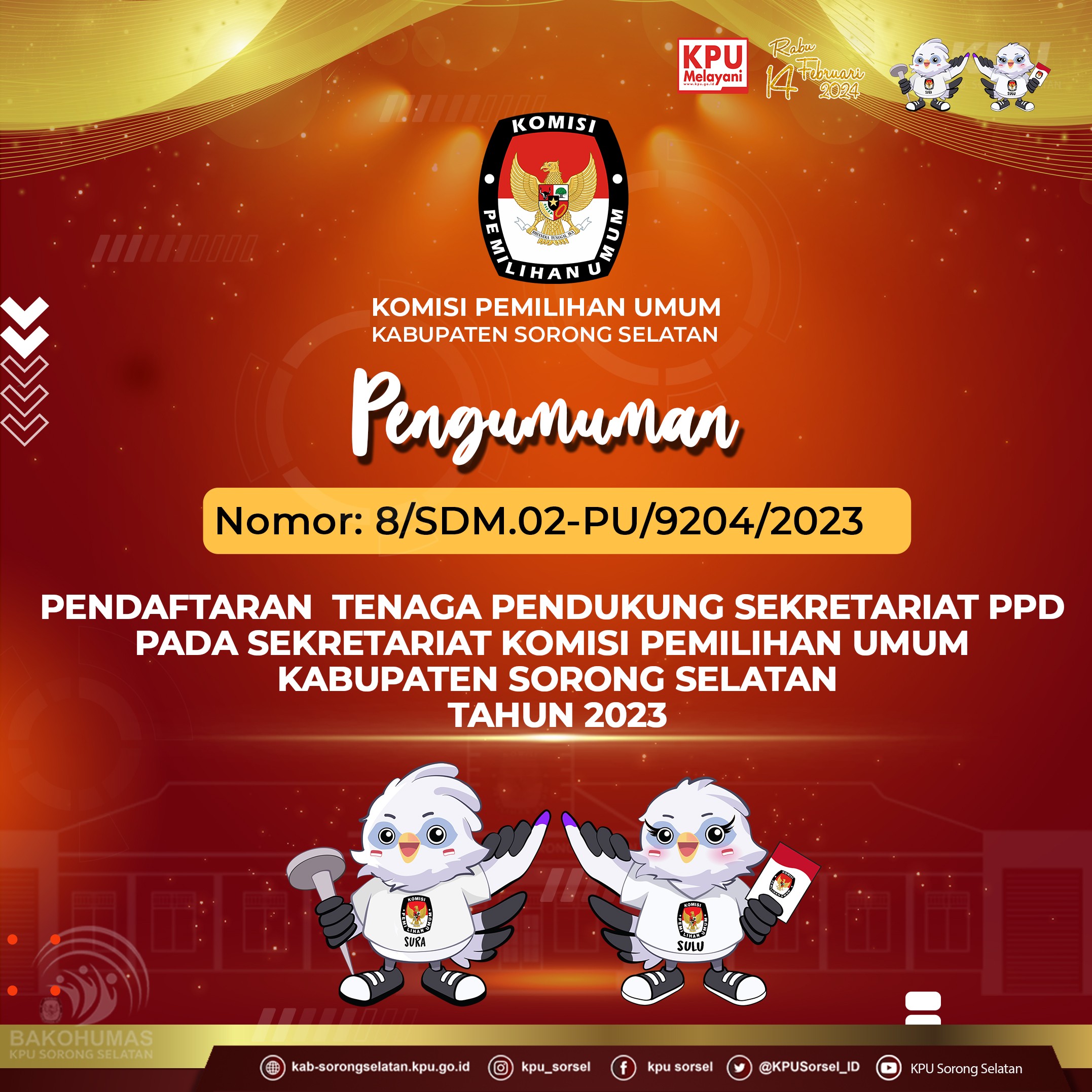 PENDAFTARAN TENAGA PENDUKUNG SEKRETARIAT PPD PADA SEKRETARIAT KOMISI PEMILIHAN UMUM KABUPATEN SORONG SELATAN TAHUN 2023