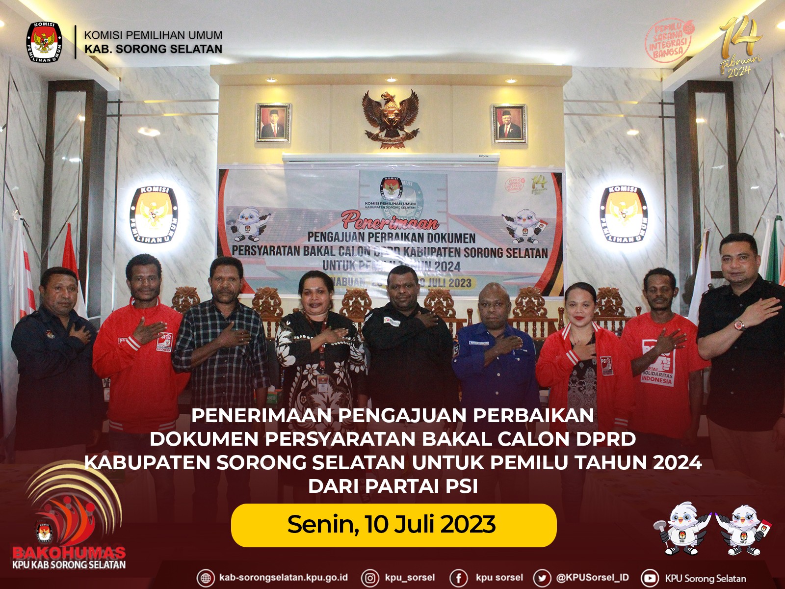 PENERIMAAN PENGAJUAN PERBAIKAN DOKUMEN PERSYARATAN BAKAL CALON DPRD KABUPATEN SORONG SELATAN UNTUK PEMILU TAHUN 2024 DARI PARTAI PSI