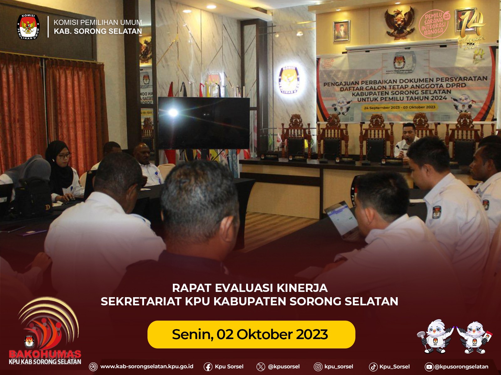 #TemanPemilih, Sekretariat KPU Kab. sorong selatan mengadakan rapat evaluasi kinerja staff pada senin(02/10/2023) di aula kantor.