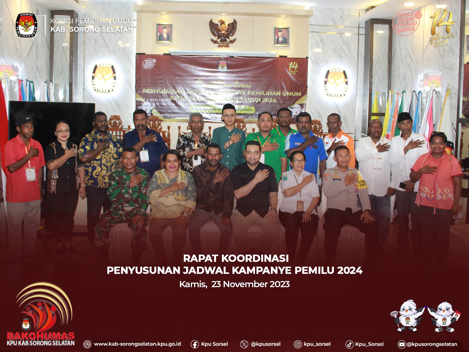 Dalam penyusunan jadwal kampanye tersebut, sekretaris KPU kab. Sorong Selatan, Moh Rusdi, meminta agar ketua-ketua DPC parpol dapat memperhatikan dan mencermati kembali jadwal yang telah disusun.