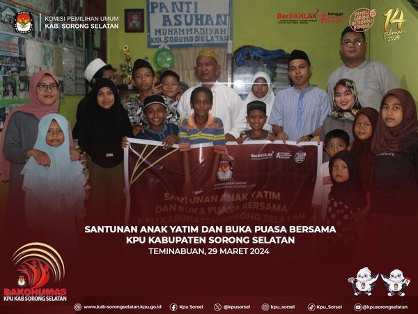 #Temanpemilih, jumat (29/2/2024) KPU Kabupaten sorong selatan melaksanakan kegiatan Santunan dan Buka Puasa Bersama Anak Yatim di Panti Asuhan Muhammadiyah,Teminabuan.