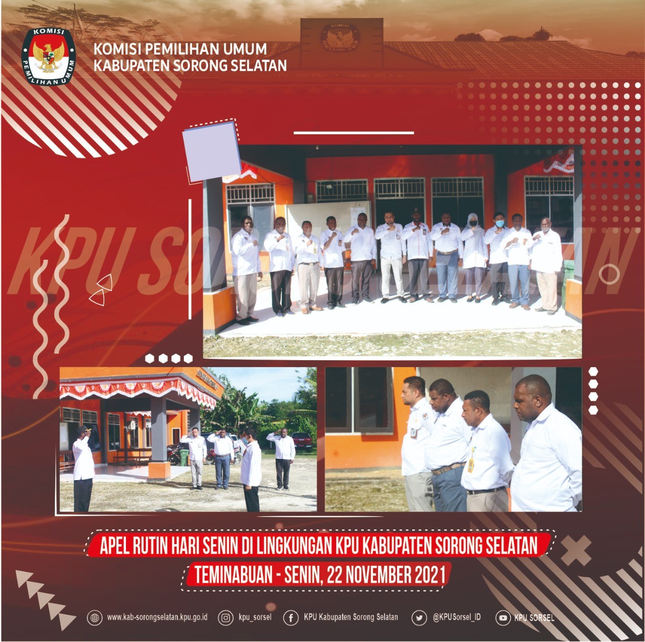 #TemanPemilih, Pelaksanaan apel pagi, Senin 22 November 2021 Komisi Pemilihan Umum Kabupaten Sorong Selatan